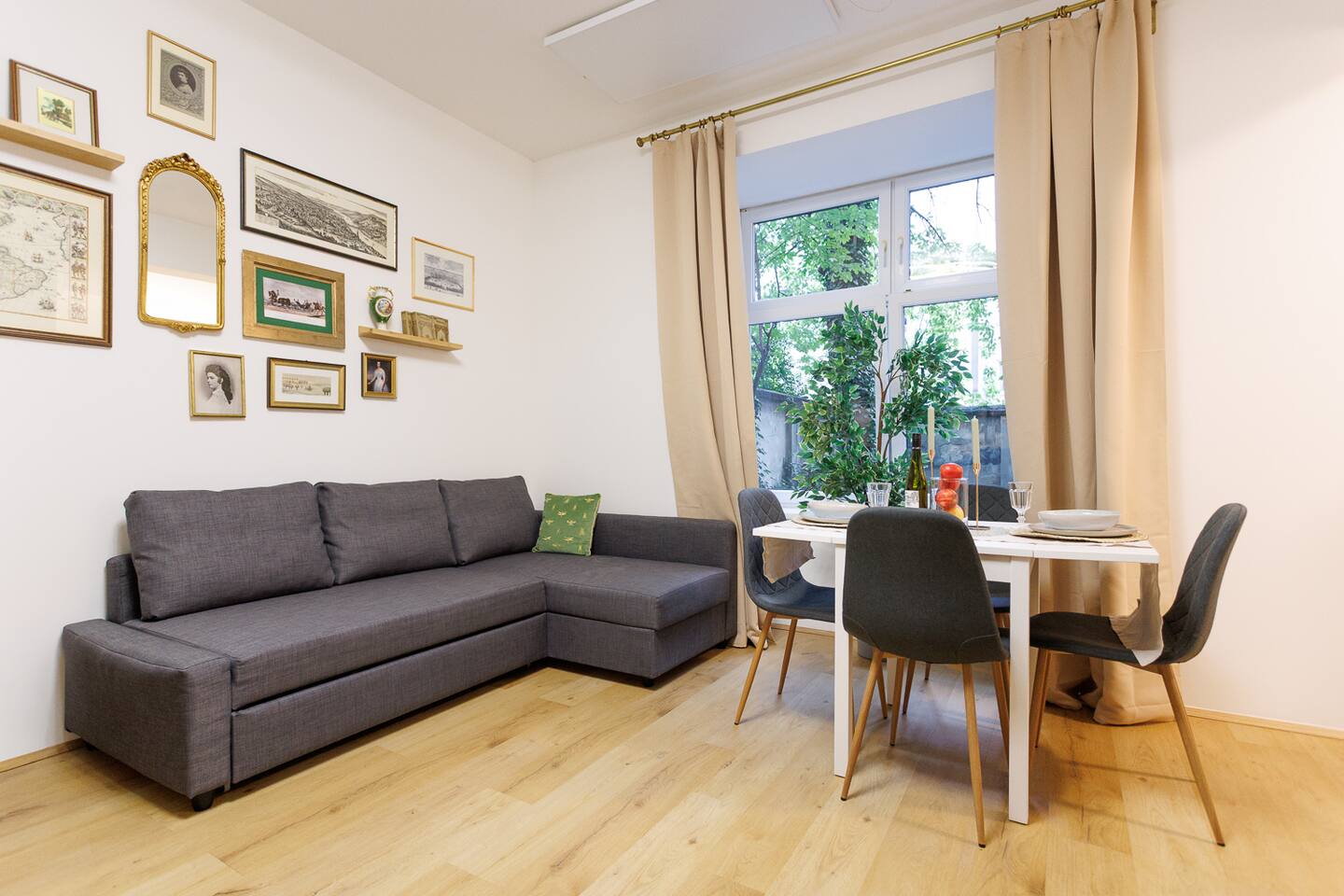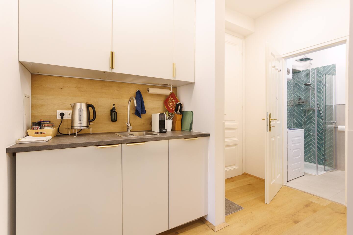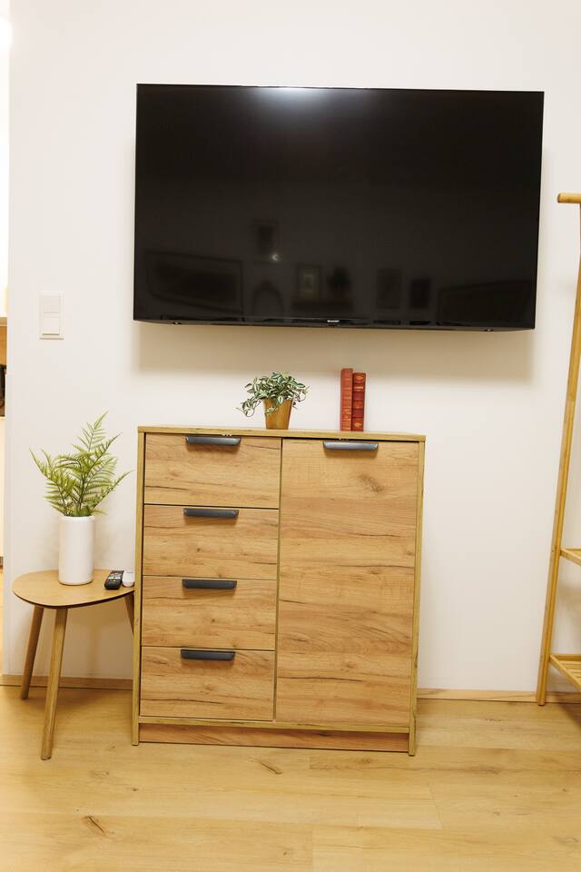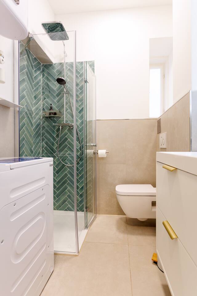The bedroom is your personal retreat, designed for ultimate relaxation. A comfortable double bed with high-quality bedding ensures a restful sleep. There is plenty of storage space to keep your belongings neatly organized, and the peaceful surroundings promise uninterrupted rest. For additional guests, the living area offers a sofa bed. The bathroom has been completely renovated and is modernly designed. It provides a refreshing space to start or end your day. Enjoy a hot shower in the spacious walk-in shower, with fluffy towels, body wash, and hand soap available. Our apartment is ideally located in a quiet residential area, offering you a peaceful retreat away from the hustle and bustle of the city, yet close enough to reach Vienna’s famous landmarks in just a few minutes. Public transport is only a short walk away, making it easy for you to explore everything this beautiful city has to offer. Whether you want to visit the historic Schönbrunn Palace, the lively Naschmarkt, or the cultural treasures of the MuseumsQuartier, everything is conveniently accessible.