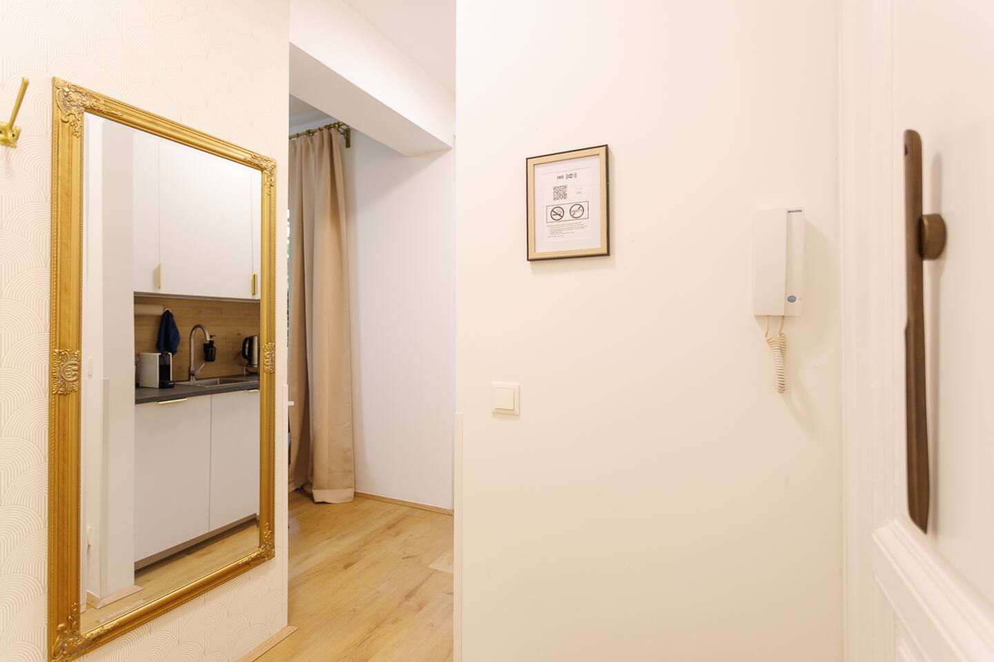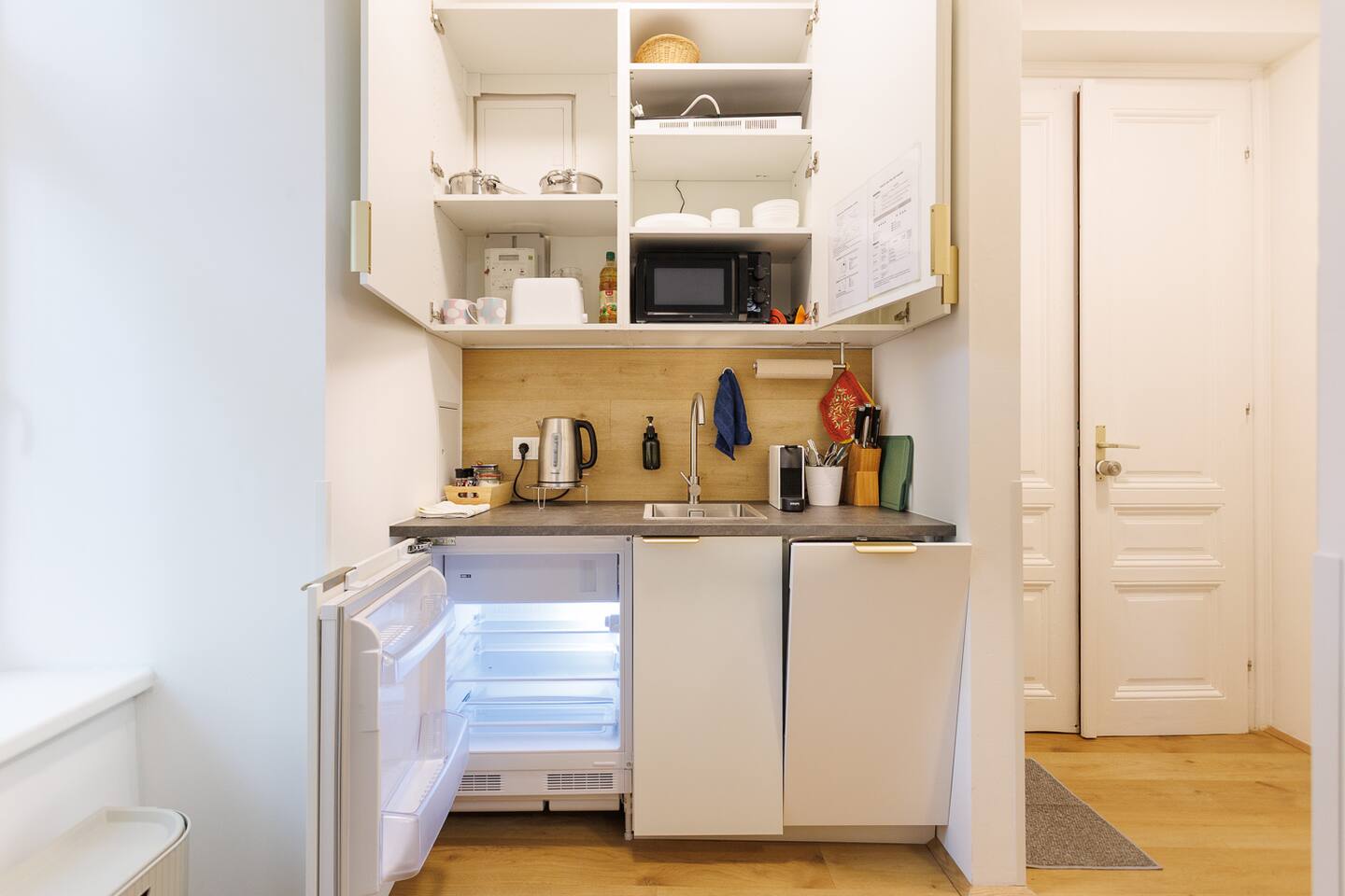 Garage and supermarket directly opposite. 100 metres to tram 49 (every 7 minutes) to U3 Hütteldorfer Straße (2 stops). From there, take the U3 to Stephansplatz in 12 minutes. The open-plan living area is designed in classic Viennese style with a double bed (1.80 x 2 metres), comfortable sofa bed and smart TV. In the fully equipped kitchen, you can try out our Viennese recipes, including a Nespresso machine for your morning coffee rituals.