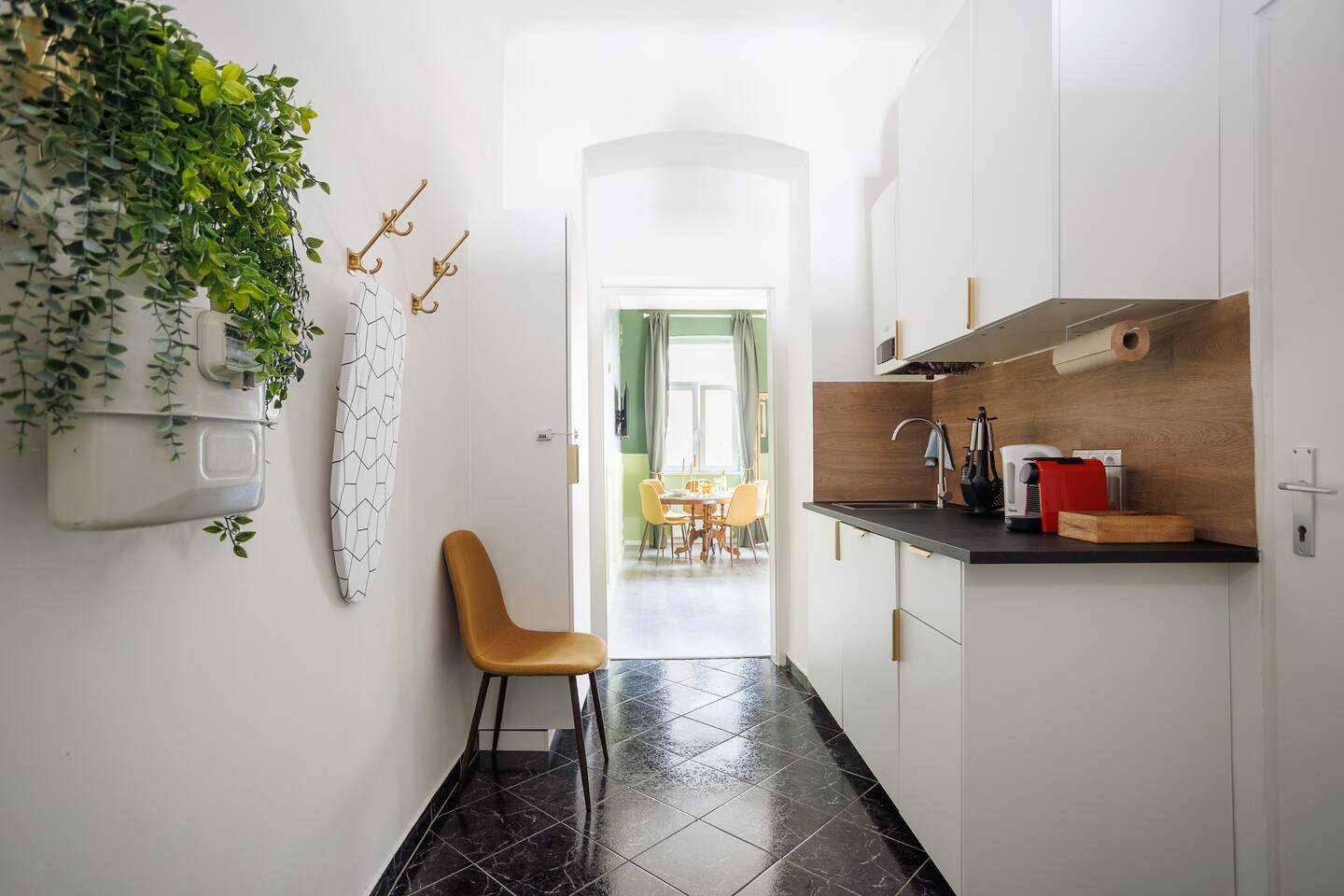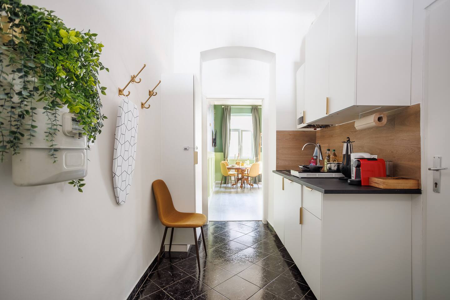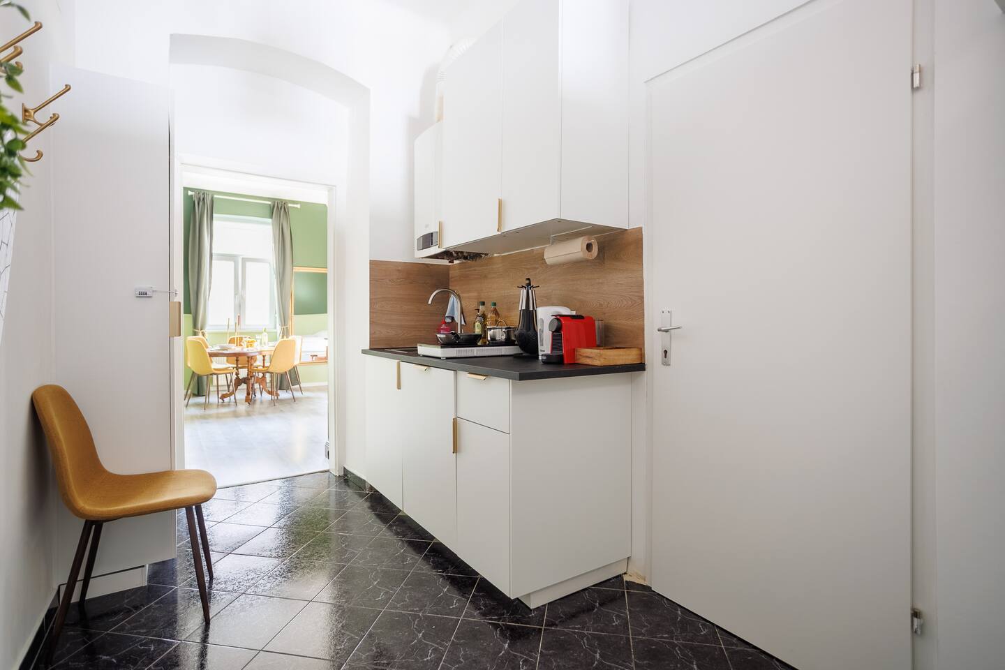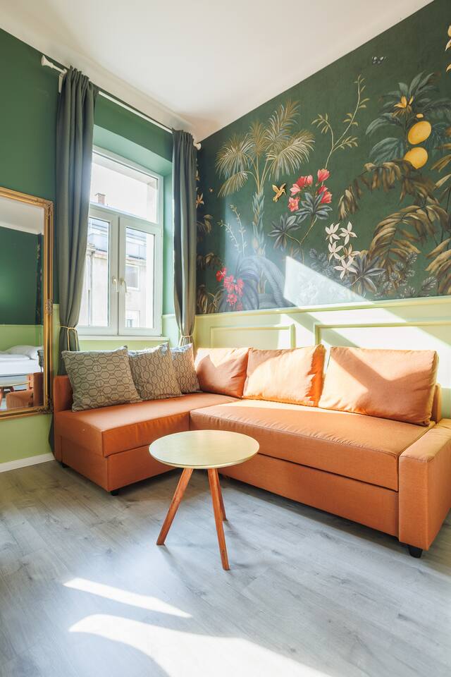 Die Wohnung befindet sich im 3.Stock ohne Lift. 2 min von Garage, Supermarkt und Westbahnhof entfernt. Von dort bist du mit der U3 in 6 Minuten am Stephansplatz Der offene Wohnbereich ist im klassischen Wiener Stil gestaltet mit Doppelbett (1,80x2m), bequemen Schlafsofa, einem Stockbett und Smart-TV. Ein getrennter Raum mit einem weiteren Stockbett ist ideal für Gruppen. In der voll ausgestatteten Küche inkl Nespresso-Maschine kannst du unsere Wiener Rezepte austesten.