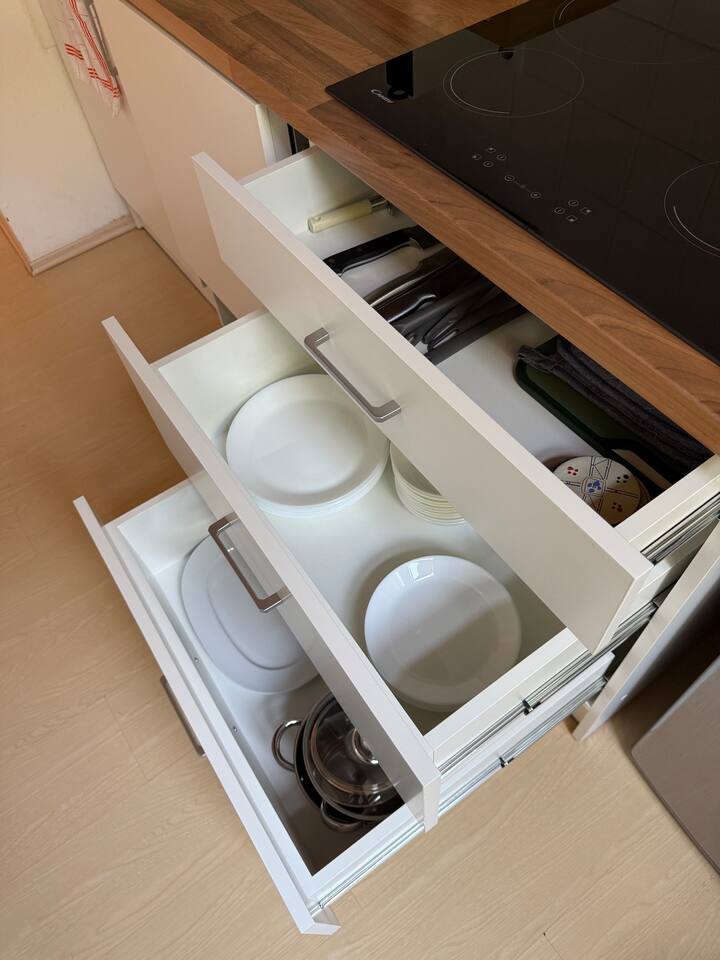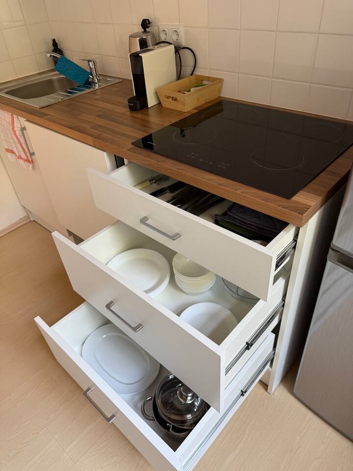 Die voll ausgestattete Küche mit moderner Ausstattung, einschließlich Nespresso-Maschine, ist ideal für deine morgendlichen Kaffeerituale und kulinarischen Kreationen.